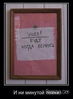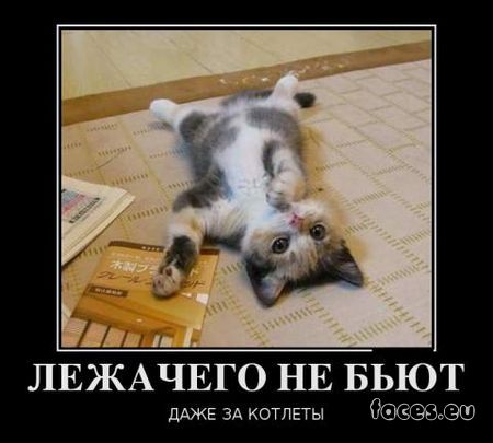 Живу на 5-ом этаже. Как-то вышел покурить, смотрю чей-то кот крадётся по козырьку... и явно намерен разорить гнездо ласточек... Я затаился, и как рявкну на весь двор: " Брысь отсюда, сволочь! Ты что, сука, делаешь???!!!" Результат: * Бабка, явно не из нашего дома и рвущая цветы на клумбе, резко стартанула во дворы; * Трое пареньков, лет по 11-13, курящих за углом , сиганули так, что засверкали пятки; * Девушка, что клеила объявления на дверях подъезда, моментально ретировалась; * А из открытого окна (не скажу какой квартиры) на втором этаже, выпрыгнул мужик в одних трусах с ботинками и штанами подмышкой........ .... И ТОЛЬКО, С@КА, КОТ ПРОДОЛЖАЛ МЕДЛЕННО КРАСТЬСЯ К ЗАВЕТНОЙ ЦЕЛИ.  |